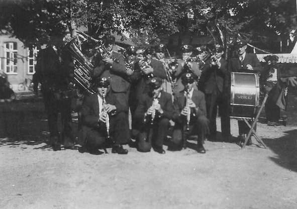 Op onderstaande foto zien we de muzikanten die meewerkten aan de bevrijdingsconcerten. Deze foto is gemaakt in 1945 voor de Meesterswoning in Wedde.