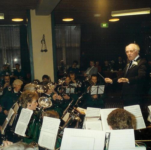 Foto van het jubileumconcert in 1987 met dirigent Engbert Gruben